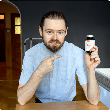 Jag har tränat taekwondo varje dag i 4 år. Jag använder NuviaLab Flex profylaktiskt, tack vare vilket mina leder och brosk bättre tål långa och intensiva rörelser. Jag rekommenderar speciellt denna produkt för dina knän. Kapslarna är små, svälj den, skölj ner den med vatten och det är klart!
